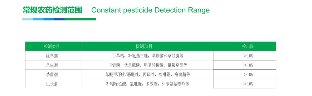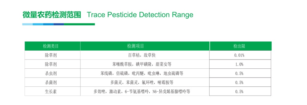 一次检测可以实现多种非法添加农药的非定向筛查,简便快速,可用于水剂、乳剂和粉剂。
